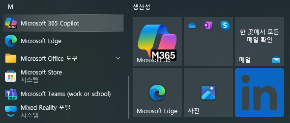 시작 메뉴를 눌렀는데 뭔가 이상해서 보니까 기존의 Microsoft 365 (Office) 앱이 Microsoft 365 Copilot으로 바뀌었음.