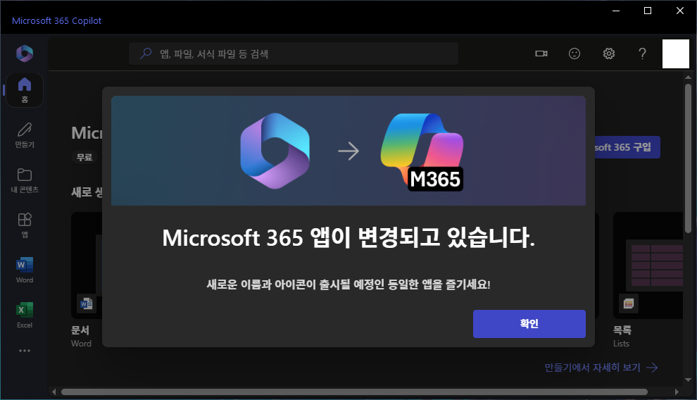 잡담 MS가 오피스365 앱 이름을 바꿨더라.