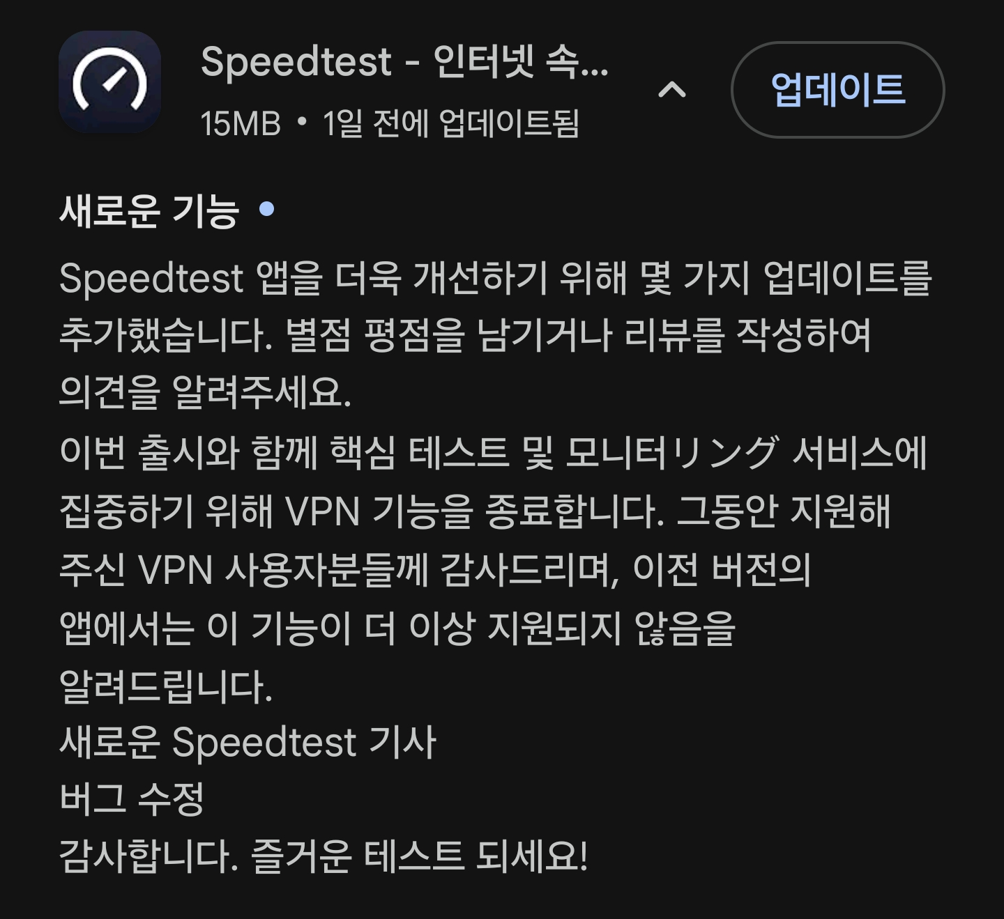 잡담 Speedtest 앱 업데이트 설명에 찐빠를 냈군 페이지 정보 작성자리뉴아 조회 22회 작성일 2026-04-02 16:29:23 댓글 0 등급: ★★★☆☆[영원의 메아리] / 종족: 엘프 / 성격: 광기 / 역할: 딜러 / 공격방식: 물리 / 배치: 중열 본문 일본어를 중역했나봄 댓글목록 등록된 댓글이 없습니다.