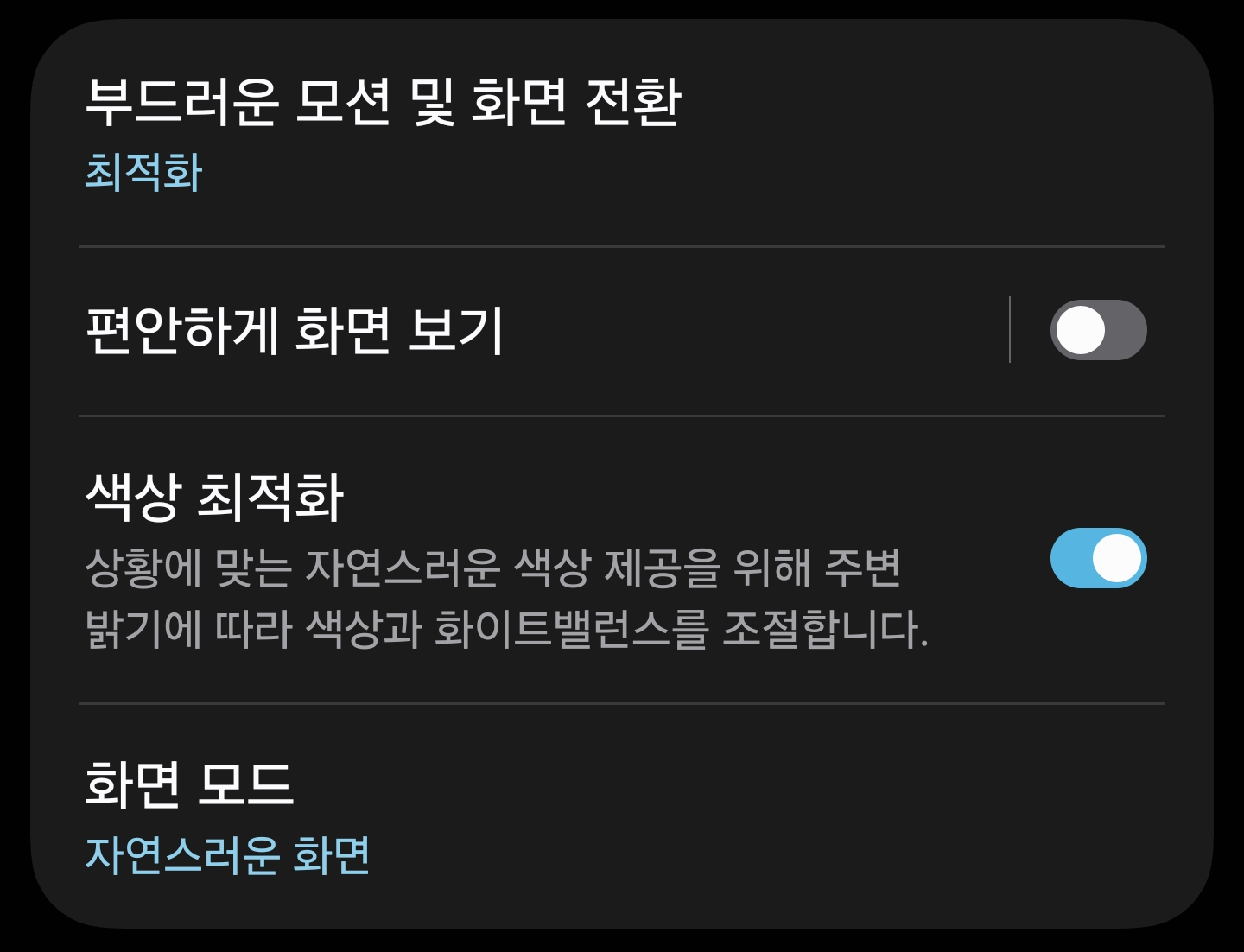 잡담 갤럭시 S24부터 색상 최적화라는 기능이 추가됐는데