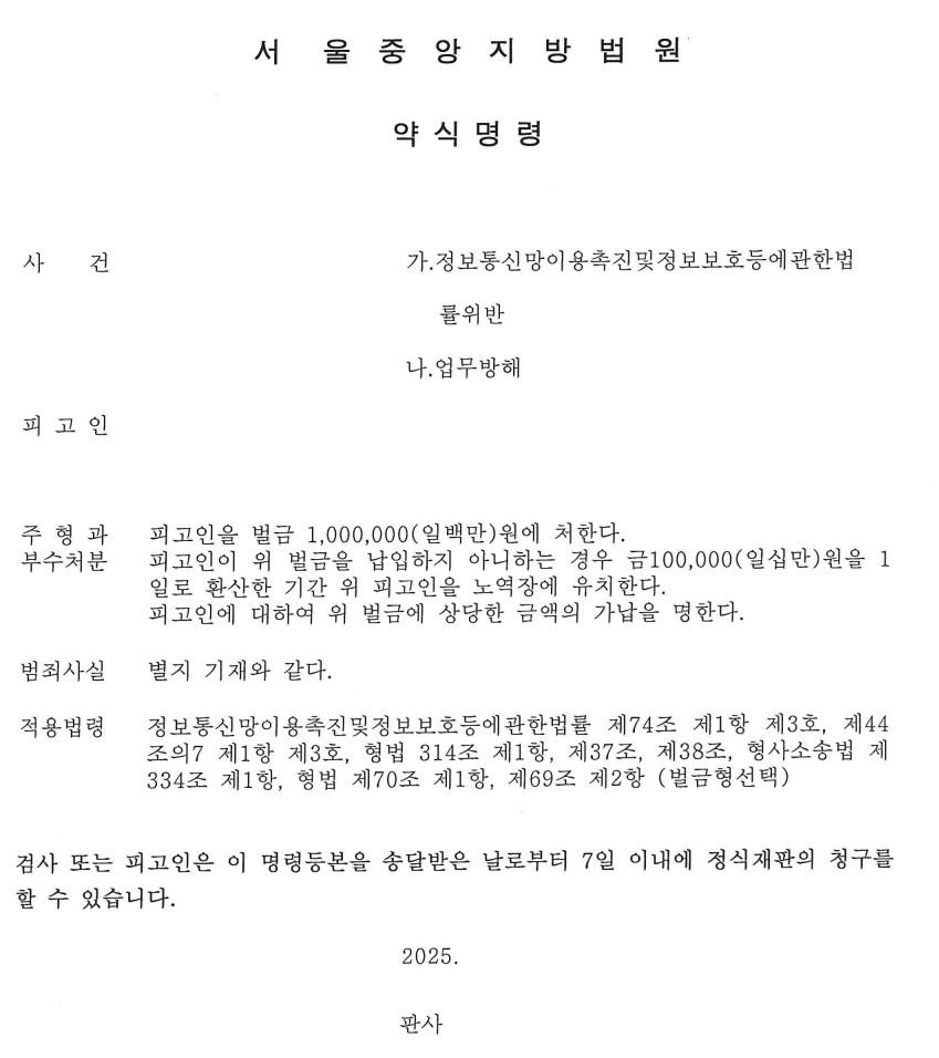 향후에도 유사 행위에 대해 강경한 법적 조치를 이어가
